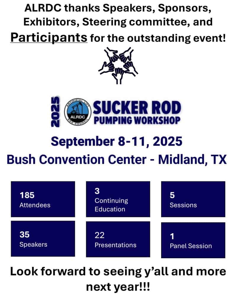 This September, oil & gas professionals from all over the world will gather in Midland, Texas for four days of continuing education, technical sessions, panels, and more. Join us as we share new insights and emerging trends, explore best practices, and discuss the latest advancements in sucker rod pumping technology and optimization. You'll discover new and leading products and services in the nearby exhibitor hall, and enjoy ample opportunities to network with individuals from diverse professional backgrounds.