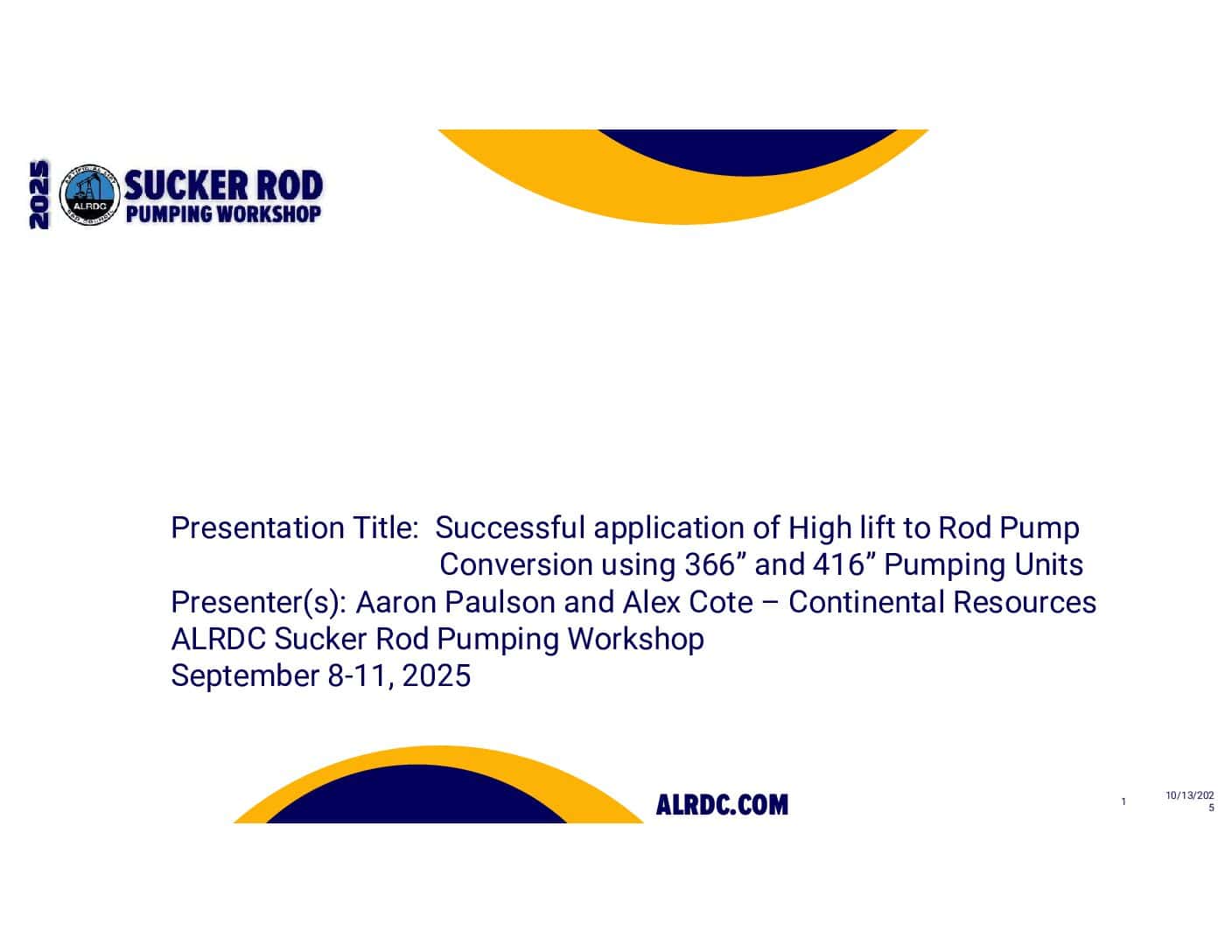 Successful application of High lift to Rod Pump Conversion using 366” and 416” Pumping Units Aaron Paulson and Alex Cote – Continental Resources ALRDC Sucker Rod Pumping Workshop September 8-11, 2025
