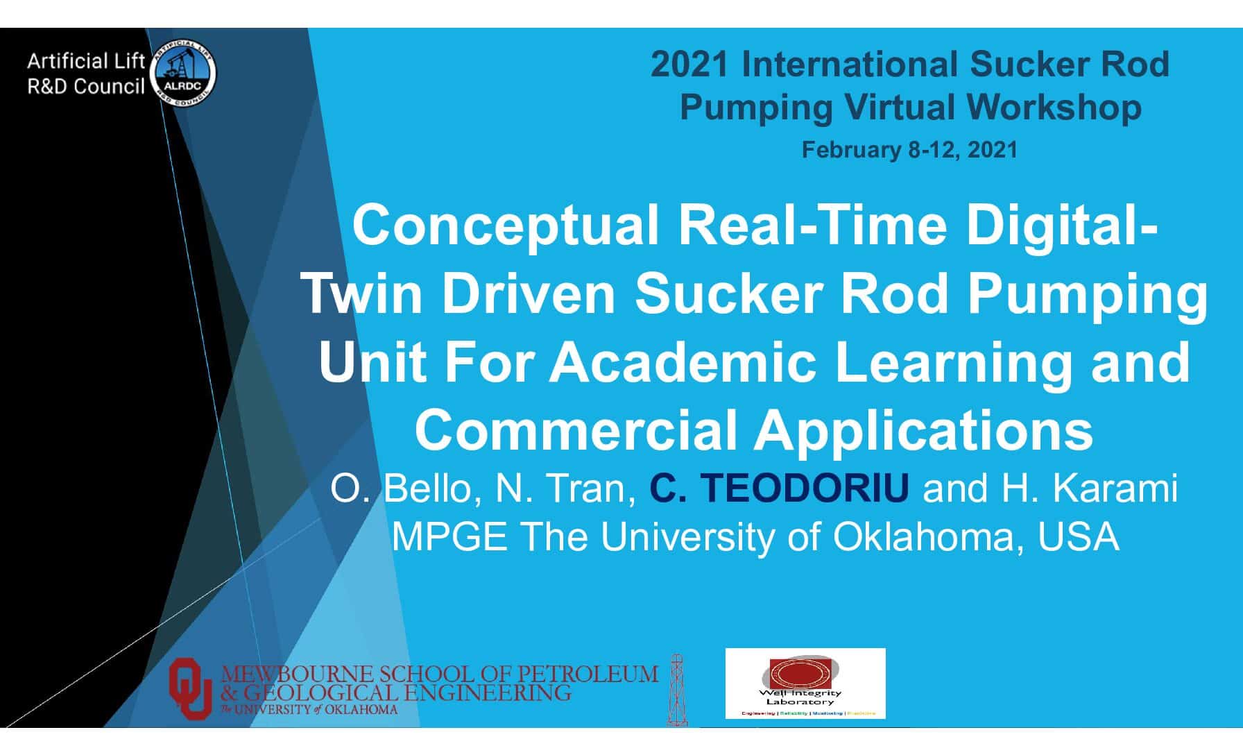 Conceptual Real-Time Digital Twin Driven Sucker Rod Pumping Unit For Academic Learning and Commercial Applications O. Bello – MPGE The University of Oklahoma N. Tran – MPGE The University of Oklahoma C. TEODORIU – MPGE The University of Oklahoma H. Karami – MPGE The University of Oklahoma 2021 International Sucker Rod Pumping Virtual Workshop February […]