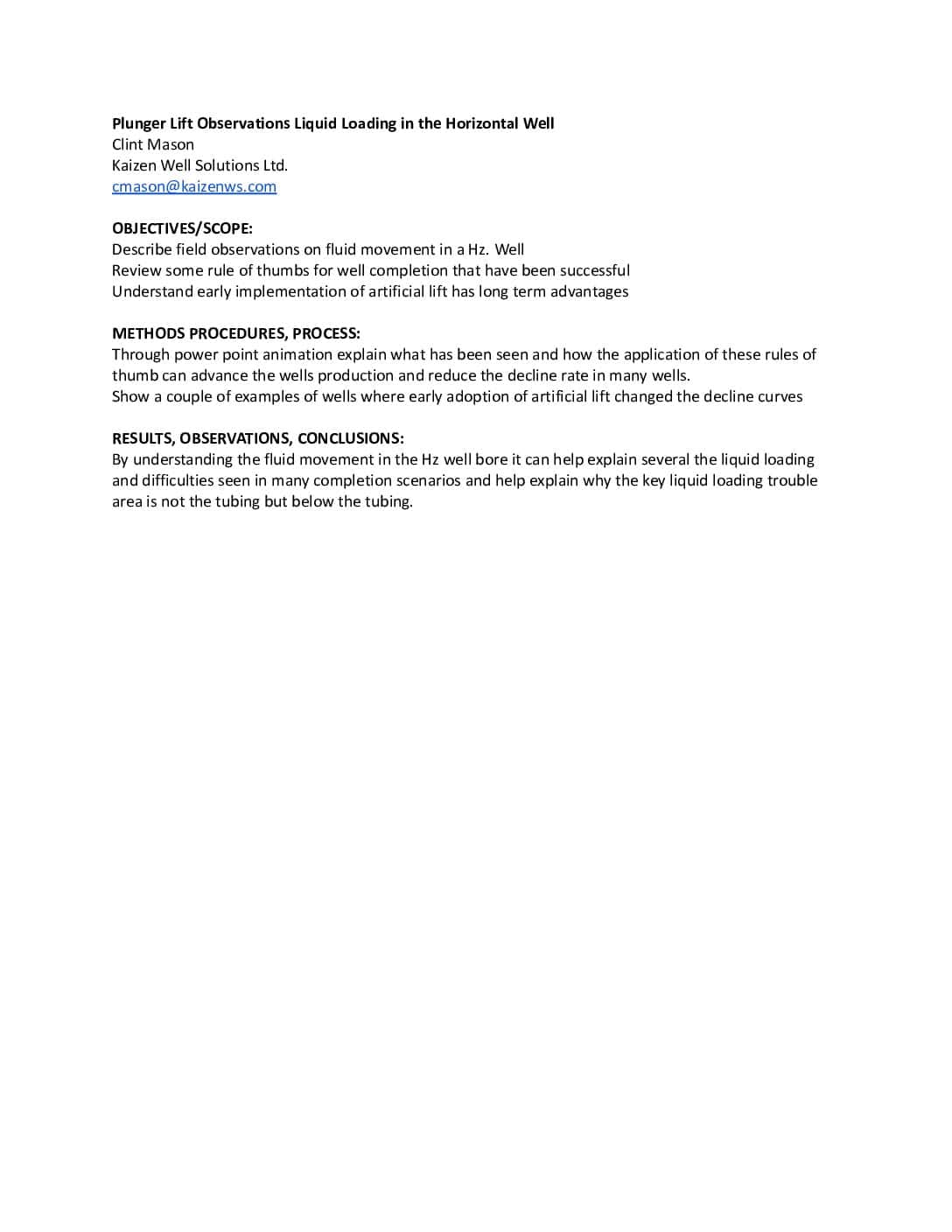 Horizontal Well liquid Movement Observations and Early Adoption of Artificial Lift Methods Clint Mason – Kaizen Well Solutions Ltd. 2022 ALRDC Artificial Lift Workshop Houston, Texas February 28th – March 3 The objective is to describe field observations on fluid movement in a Hz. Well Review some rule of thumbs for well completion that have […]