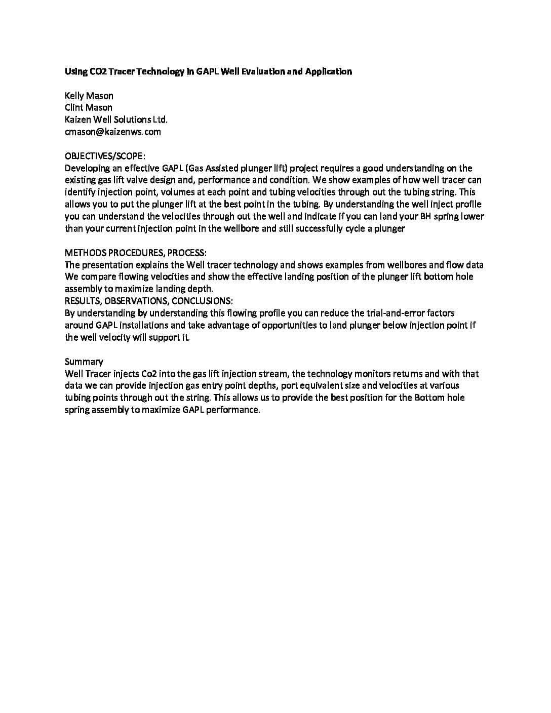 Using CO2 Tracer Technology in GAPL Well Evaluation and Application Kelly Mason – Kaizen Well Solutions Ltd. Clint Mason – Kaizen Well Solutions Ltd. 2022 ALRDC Artificial Lift Workshop Houston, Texas February 28th – March 3 Developing an effective GAPL (Gas Assisted plunger lift) project requires a good understanding on the existing gas lift valve […]