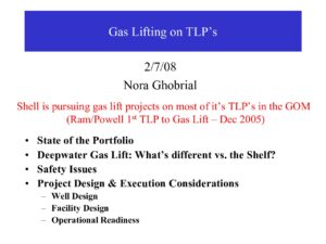 Shell is pursuing gas lift projects on most of it’s TLP’s in the GOM